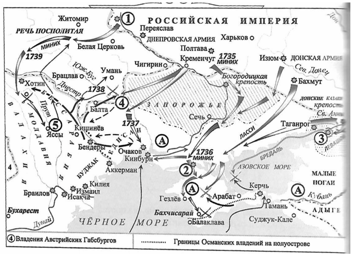 «18 мая 1736 г. русская армия подошла к 7-километровой линии Перекопских укреплений. Миних был неприятно удивлён: казаки доносили, что "валы везде осыпались, так что местами верхом и в телегах переехать можно". На деле ров был вычищен и глубок, склоны его круты, и местами укреплены каменьем, а бруствер (насыпь для стрельбы) по всему валу сделан новый, башни починены. Тем не менее фельдмаршал решил штурмовать Перекоп».