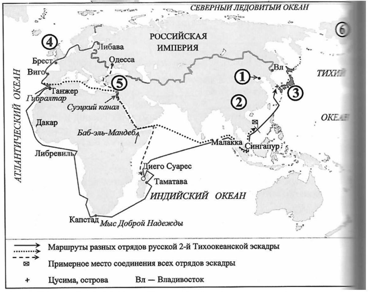 Укажите название страны, обозначенной на схеме цифрой «3», частью событий войны с которой стал маршрут эскадр, обозначенный на схеме стрелками