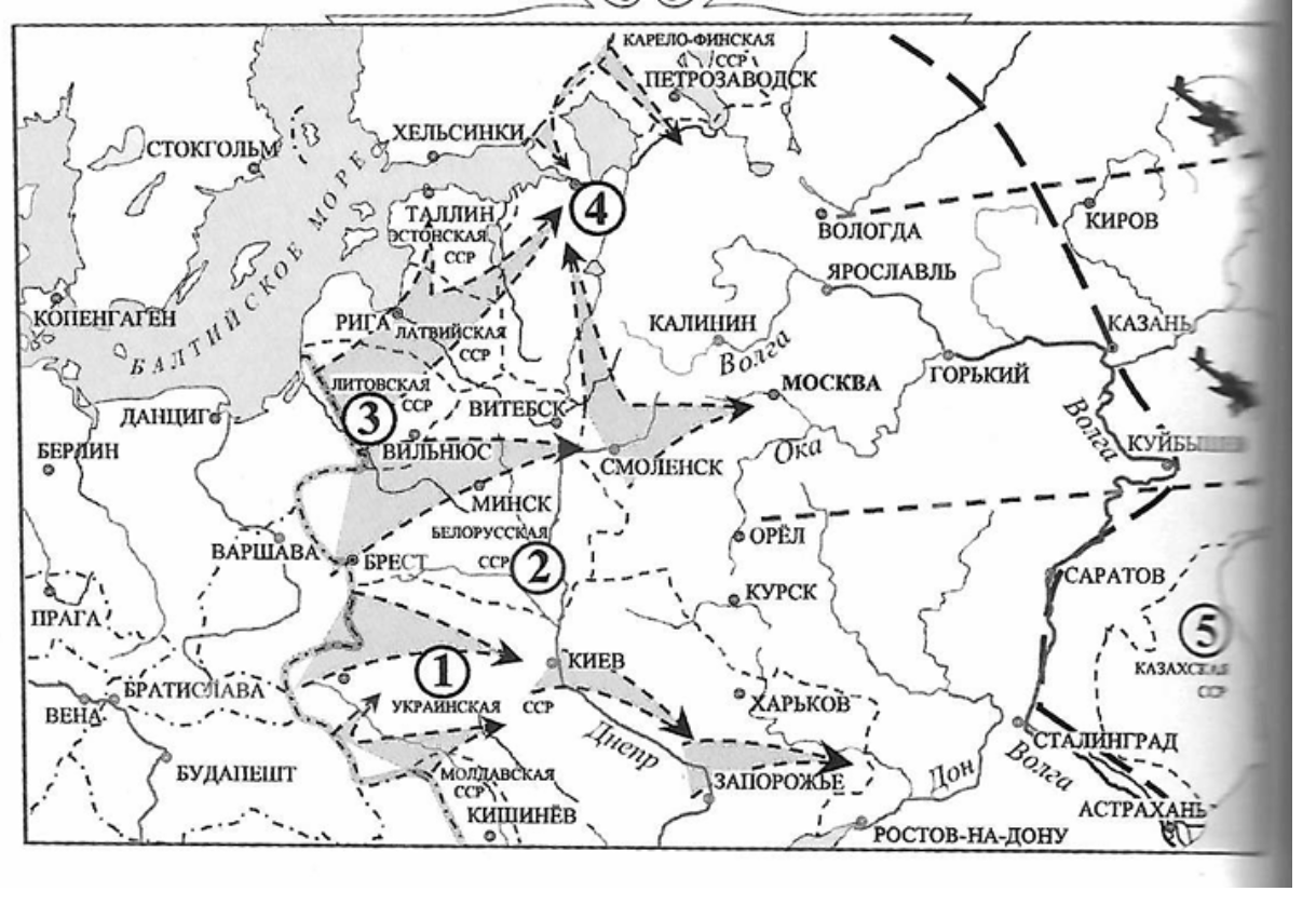 Укажите год вхождения в состав СССР государств (территорий), которые на схеме отмечены цифрами. «Тысяча девятьсот ___________________ ». Ответ запишите словом(-ами).