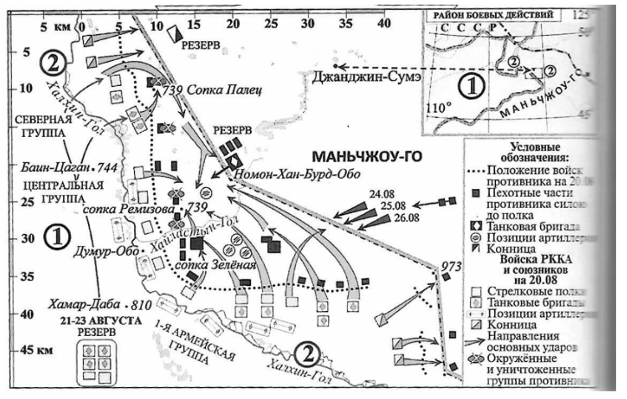2. Войска 1 Армгруппы утром 20.8.1939 переходят в решительное наступление, с целью окружить и полностью уничтожить японо-баргутские части на территории МНР между [рекой] и госграницей…»