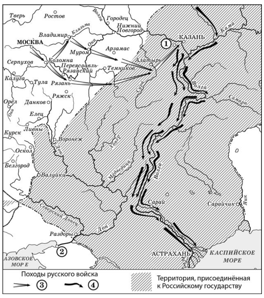 Назовите правителя российского государства, при котором состоялись походы, обозначенные на схеме стрелками.