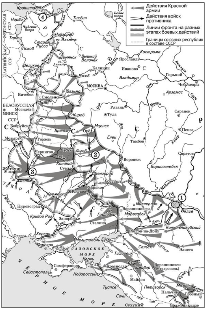 Прочтите текст о событиях, отражённых на схеме, и, используя схему, укажите название города, пропущенное в тексте.