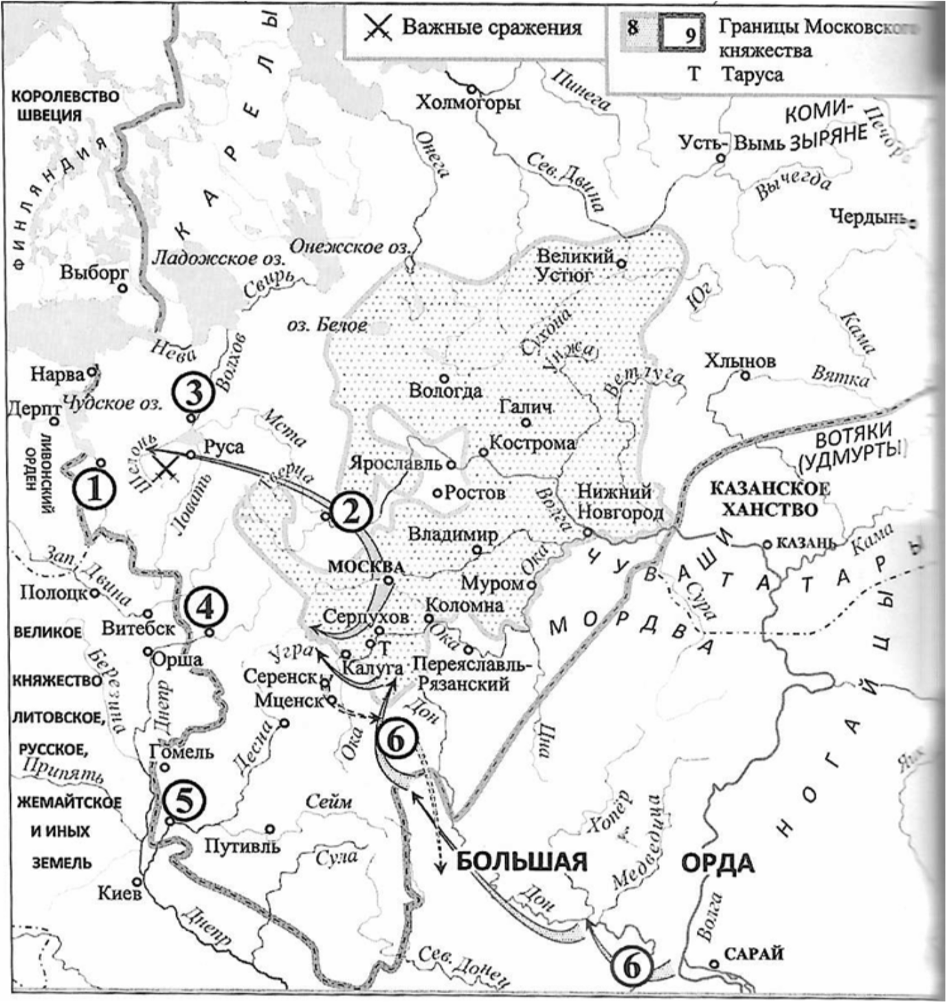 «Летом русские войска после большого смотра двинулись к Коломне, откуда вышли несколькими отрядами. Сам царь во главе большого отряда отправился из Коломны к Владимиру, а оттуда – к стоящему на Оке ________________, где русское войско соединилось с союзным войском касимовского правителя Шаха-Али и, перейдя Оку, двинулось далее на юго-восток. Другой отряд русских войск из Коломны шёл через Рязань».
