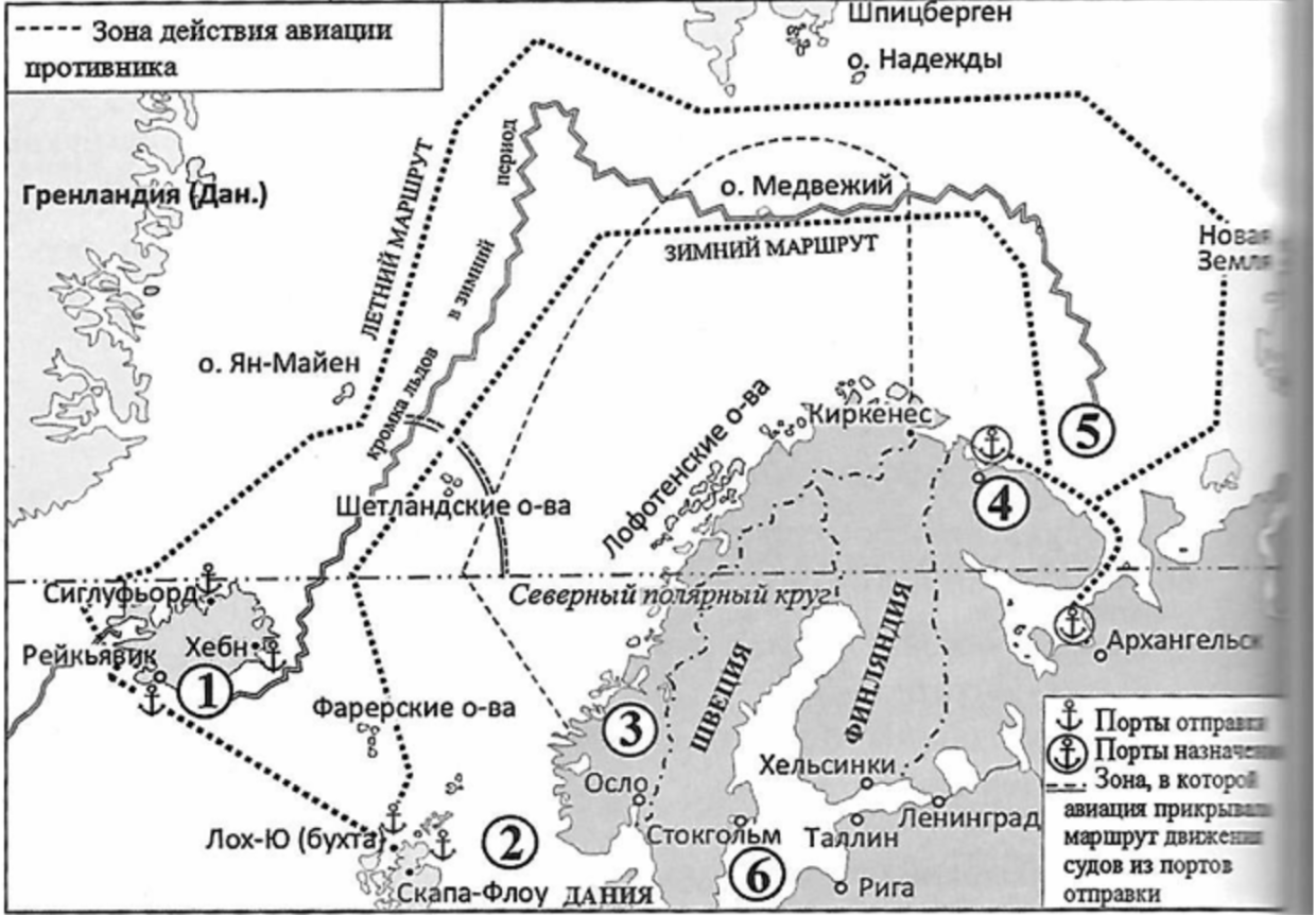 «Конвои формировались в базе Лох-Ю и Скапа-флоу в Англии; в _____________ из Рейкьявика (основной порт) и некоторых других. В 1944-1945 гг. конвои шли только из Лох-Ю. Пунктами прибытия конвоев и отправки их обратно являлись Архангельск, Молотовск (Северодвинск), Мурманск. Переходы совершались за 10-14 суток».