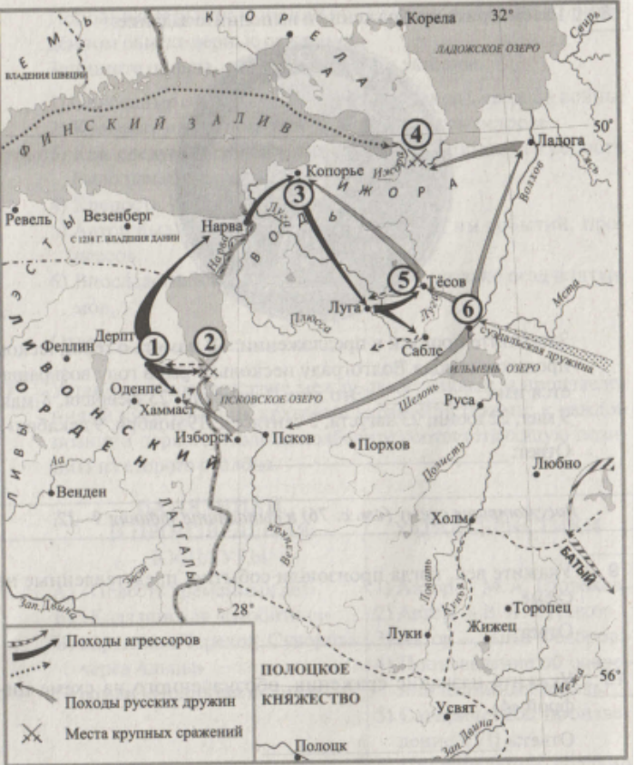 «B __________ узнали, что пришёл князь Александр с войском землю братьев-рыцарей, чиня грабежи и пожары. <...> [Рыцари пришли к единому мнению — атаковать русских. <...>