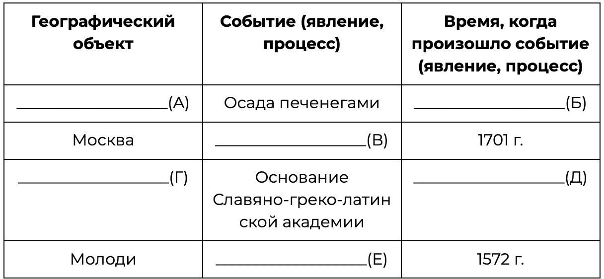 Заполните пустые ячейки таблицы, используя приведённый ниже список пропущенных элементов: для каждого пропуска, обозначенного буквой, выберите номер нужного элемента.