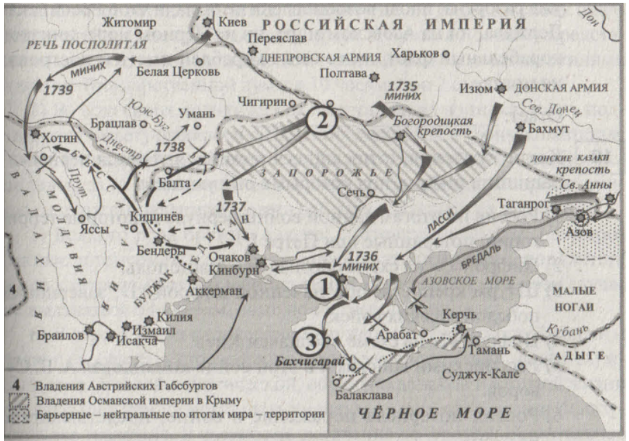 «Крепость ______________ имеет вовсе разорена быть, и в разсуждении истиннаго и вечнаго мира, земля той крепости, по учреждённым границам 1700 года трактата, имеет остаться пустая, и между двумя Империями барриерою служить будет, но взаимно позволено да будет России новую крепость построить, в близости острова Черкасскаго к _______________, который остров стоит на реке Дону и из давных лет Российскою границею есть; також со стороны Оттоманской Империи позволено будет на Кубанских границах к ______________ крепость построить, по определению местоположений помянутых крепостей, которое от учреждённых с обеих сторон Коммиссаров назначено будет, на которых справедливость и дискрецию такое учреждение положено быть иметь, с такой однакож кондициею, чтоб бывшая крепость Таганрог, которая уже разорена, вновь возобновлена не была, и чтоб Российская Держава, ни на Азовском море, ни на Чёрном море, никакой корабельный флот, ниже иных кораблей иметь и построит не могла».