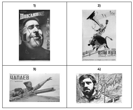 Укажите фильм, снятый в то же десятилетие, когда произошло событие, которому посвящена марка. В ответ запишите цифру выбранной киноафиши. Укажите фамилию режиссера выбранного фильма.