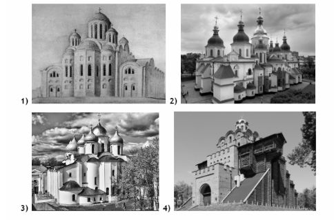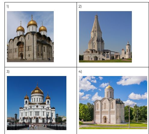 Какой из представленных ниже памятников архитектуры был создан веком ранее события, которому посвящена марка? В ответе запишите цифру, под которой обозначен этот памятник архитектуры. Укажите название памятника архитектуры.