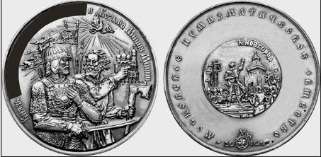 Укажите князя, имя и фамилия которого заретушированы на данной памятной медали. Используя изображения, приведите одно любое обоснование Вашего ответа.