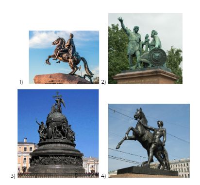 Какой из представленных памятников архитектуры был возведён после событий, отображённых на медали? В ответе запишите цифру, которой обозначен этот памятник. Укажите название города, где находится этот памятник архитектуры.