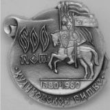 Укажите памятник культуры, созданный в этом же веке, что и произошло событие, которому посвящен значок. В ответе запишите цифру, которой обозначен этот памятник. Укажите автора этого памятника.