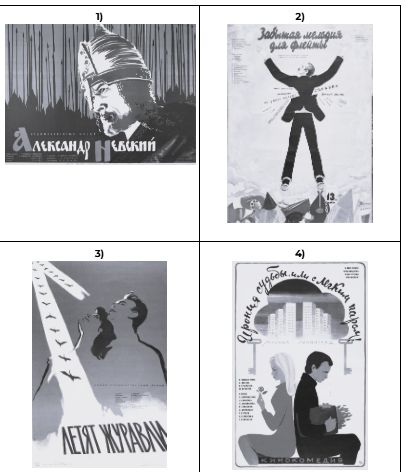 Какой из представленных ниже фильмов был снят в тот период, что и события на марке? В ответе запишите цифру, которой он обозначен. Укажите фамилию режиссера фильма.