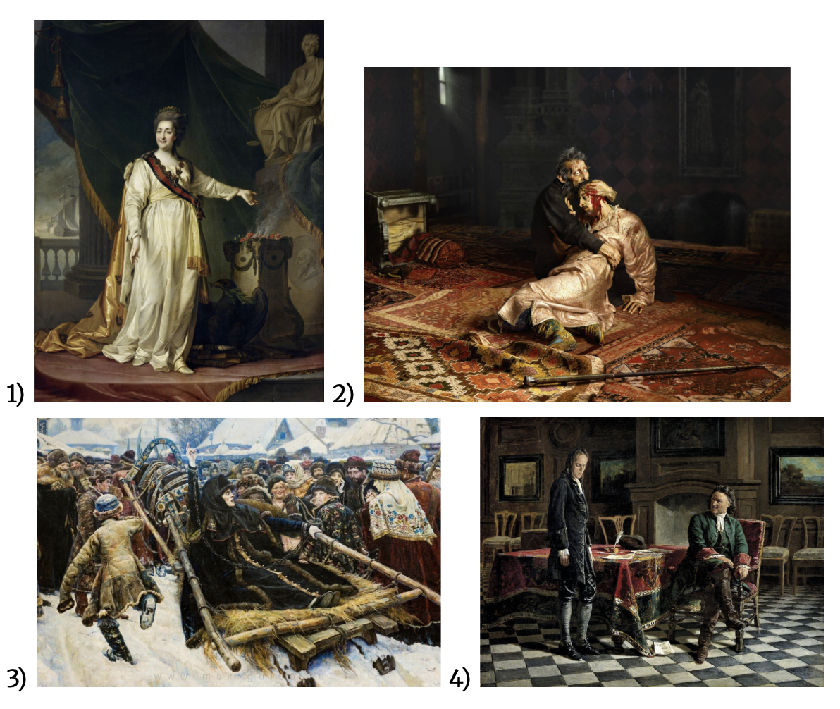 Укажите картину, которая отражает события века, к которому относится представленная монета. Напишите, в какое товарищество входил автор картины.