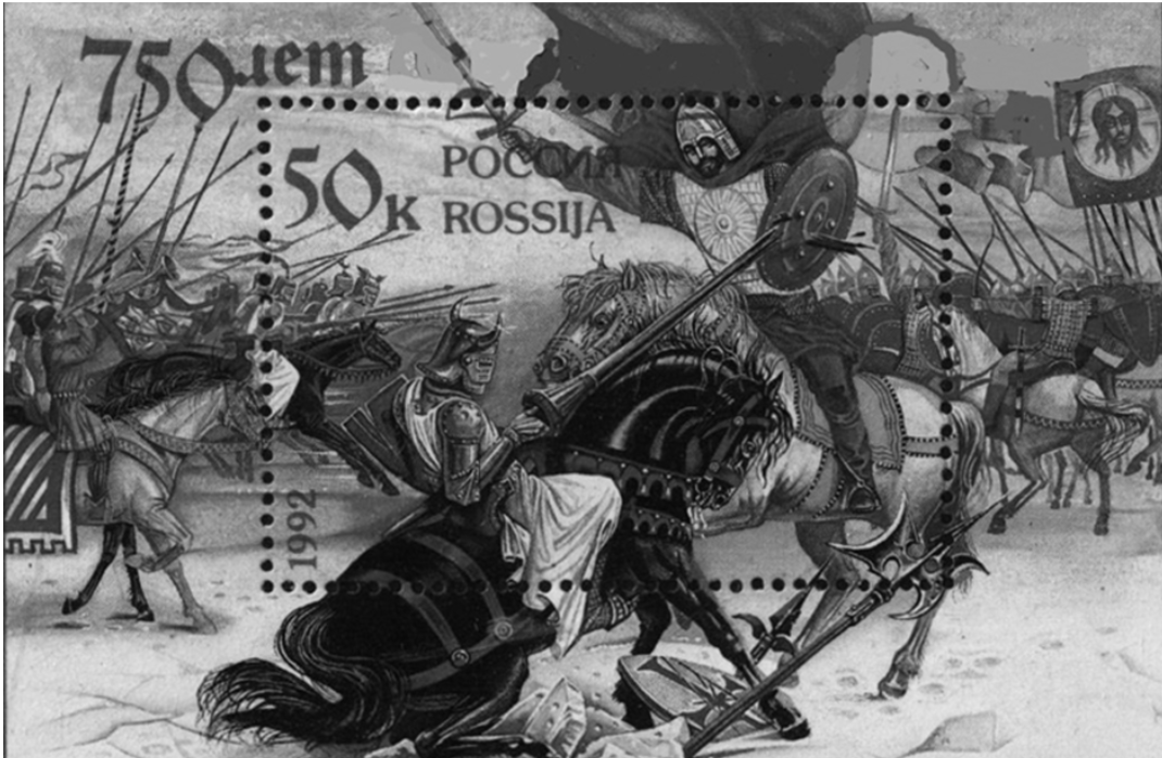 Укажите название битвы, юбилею которой посвящён почтовый блок. Используя изображение, дайте одно любое обоснование вашего ответа.