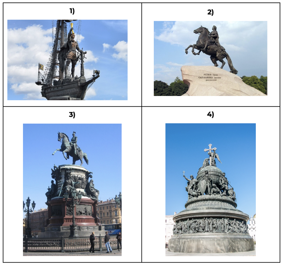 Какой из ниже представленных скульптурных памятников был создан после события, которому посвящена марка? В ответе запишите цифру, которой обозначен этот скульптурный памятник. Укажите автора этого скульптурного памятника.