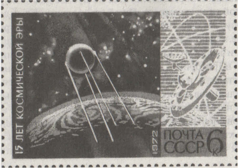 Укажите событие, которое, по мнению создателя марки, положило начало космической эре. Используя изображение, приведите одно любое обоснование вашего ответа.
