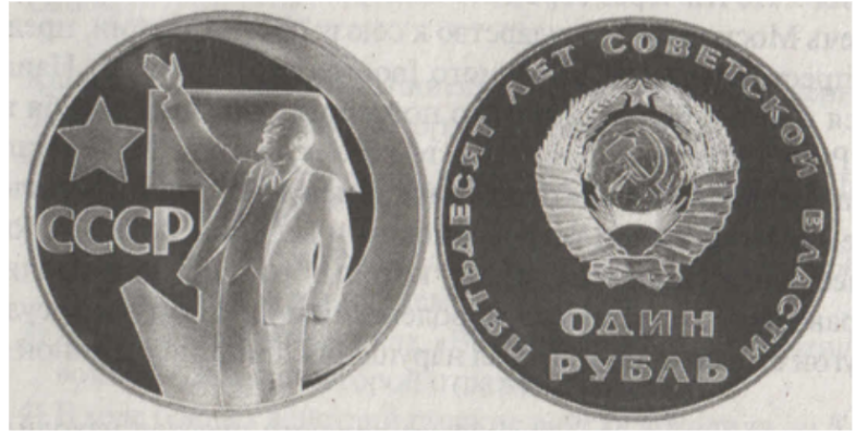 Назовите фамилию генерального секретаря ЦК КПСС в период, когда отмечался юбилей советской власти, указанный на монете. Используя изображение, приведите одно любое обоснование вашего ответа.