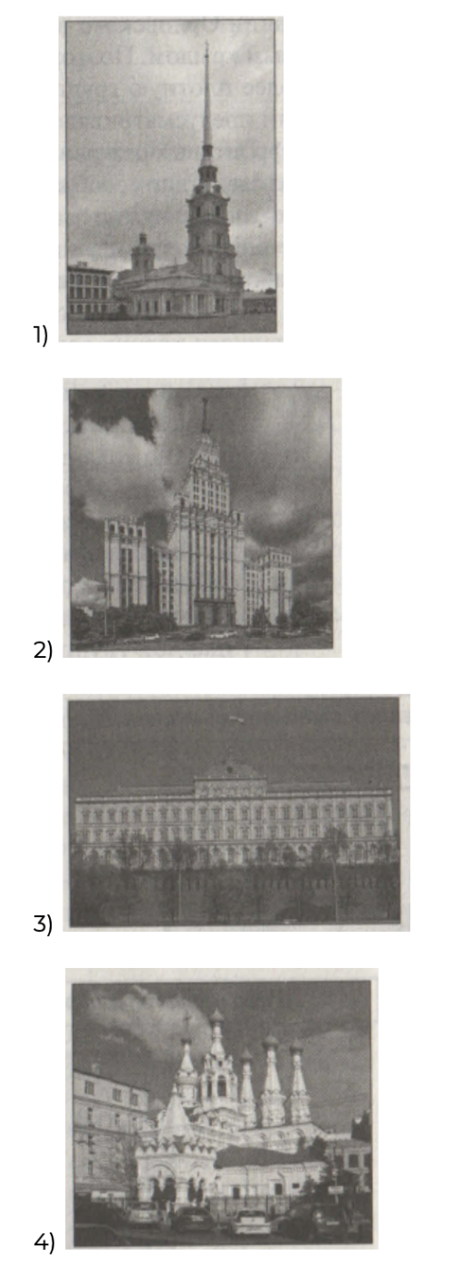 Какой из представленных ниже памятников архитектуры был создан в том же веке, что и колонна, изображённая на марке выше? В ответе запишите цифру, которой обозначен этот памятник архитектуры. Назовите город, в котором он располагается.