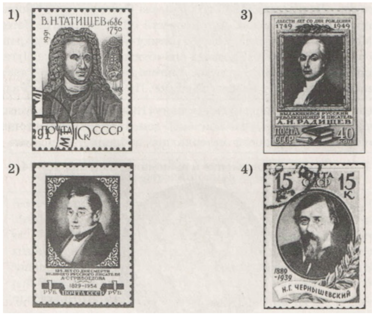 На какой из представленных марок изображен автор книги, о которой идет речь в предыдущем задании? В ответе запишите цифру, которой обозначена эта марка. Укажите монарха, в период правления которого родился автор книги.