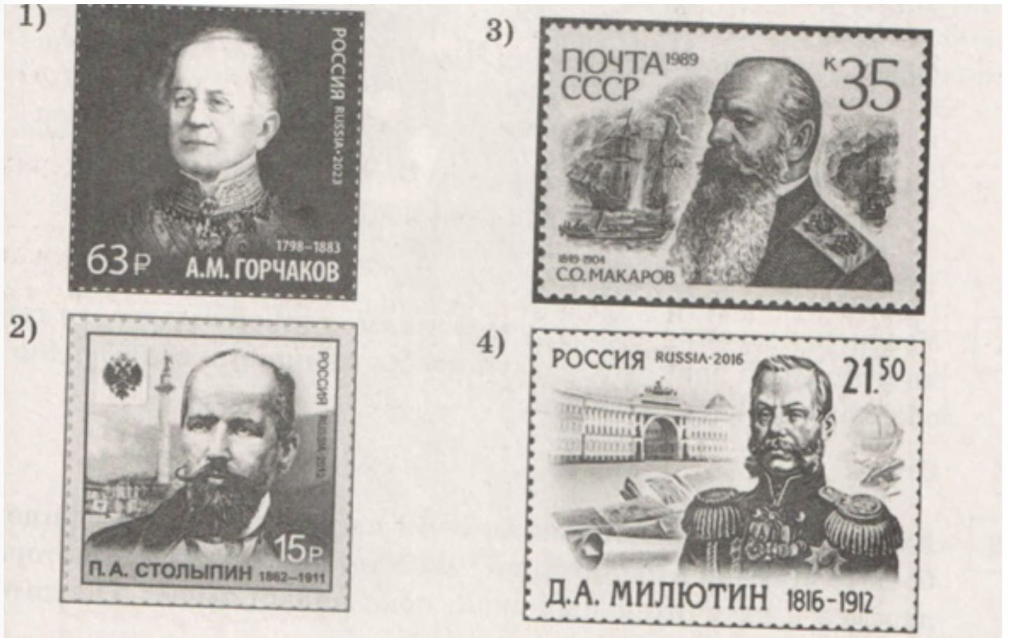 Кто из государственных деятелей Российской империи, представленных ниже на марках, был организатором проведения военной реформы в период правления императора, находившегося на престоле в тот год, когда был открыт музей, изображённый выше? В ответе запишите цифру, которой обозначена эта марка. Укажите общее название реформ, частью которых стала эта военная реформа.