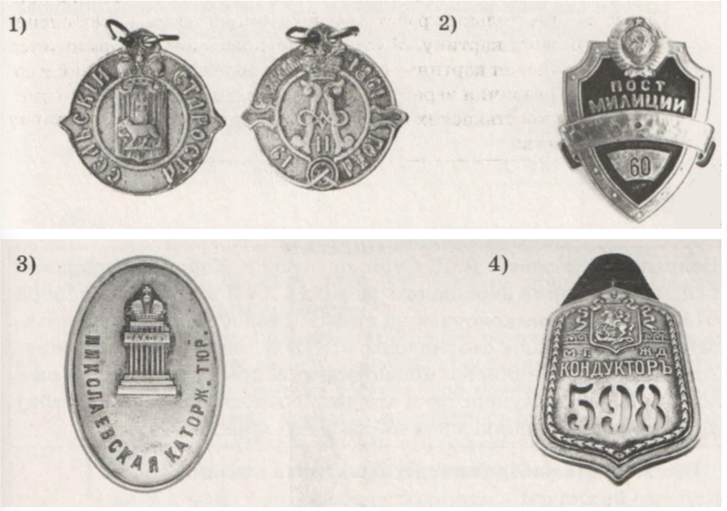 Какой из представленных ниже должностных знаков был учреждён в период тех же реформ, что и должностной знак, приведенный выше? В ответе запишите цифру, которой обозначен этот должностной знак. Укажите название реформы.