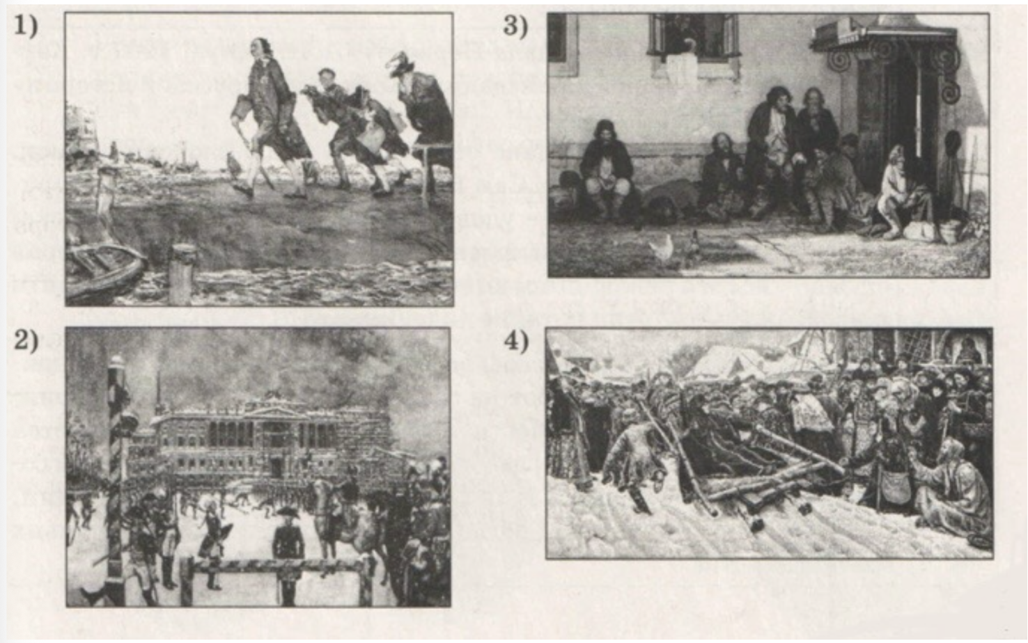Какая из представленных ниже картин была создана в том же веке, когда произошло событие, которому посвящена данная монета, и иллюстрирует одну из реформ этого царя, названных Великими либеральными? В ответе запишите цифру, которой обозначен эта картина. Укажите название реформы, которой посвящена картина.