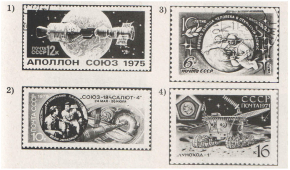 Какое из представленных на марках событий произошло в том же десятилетии, что и событие, отраженное на марке, приведённой выше?