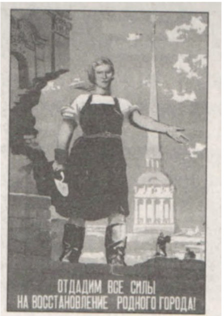 Укажите название города, на восстановление которого призывает отдать все силы этот плакат. Используя изображение, приведите одно любое обоснование вашего ответа.