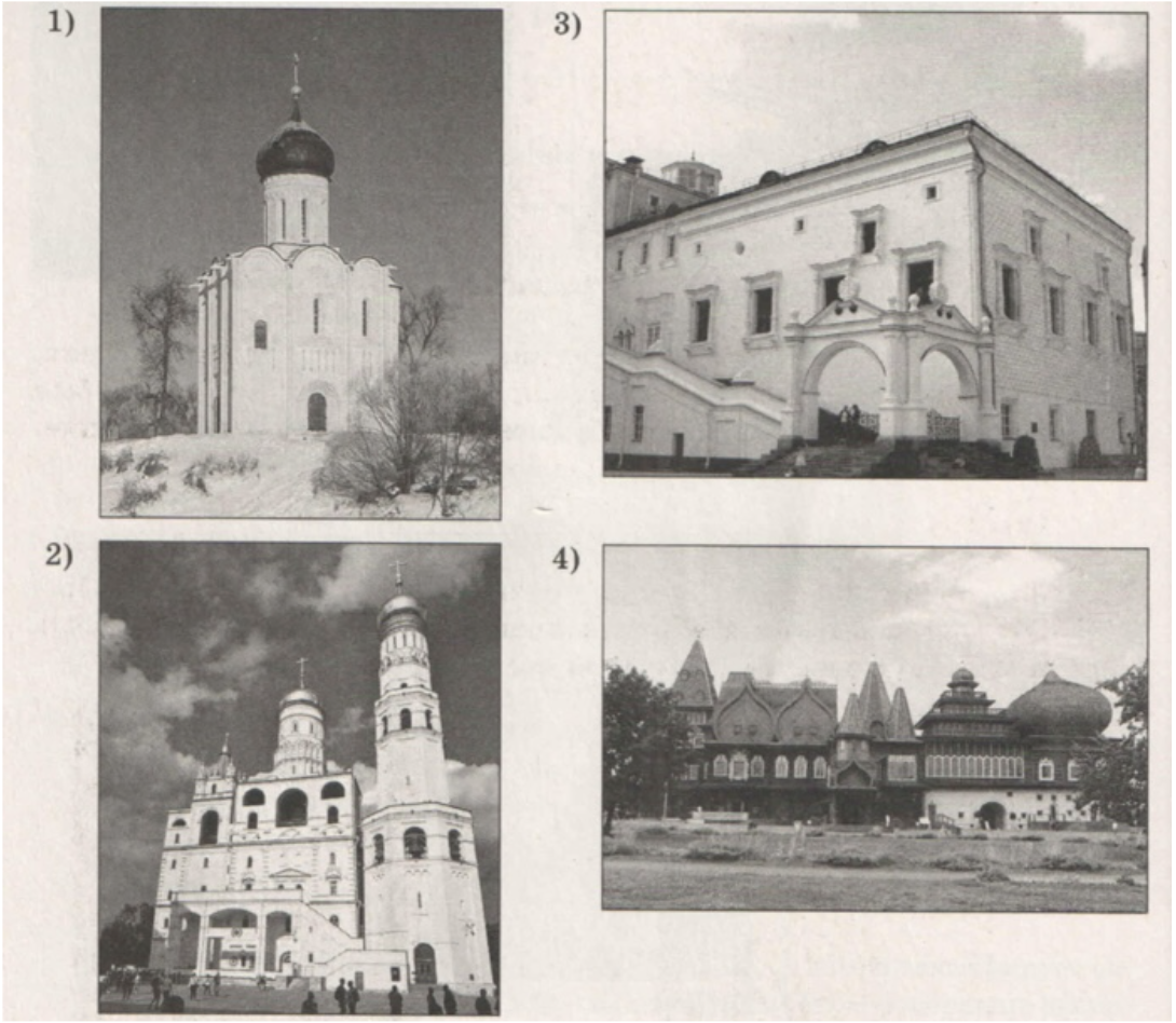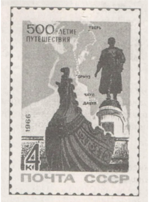 Какой из представленных ниже памятников архитектуры был создан в том же веке, в котором жил купец-путешественник, памятник которому изображён на марке? В ответе запишите цифру, которой обозначен этот памятник архитектуры. Укажите название этого памятника.
