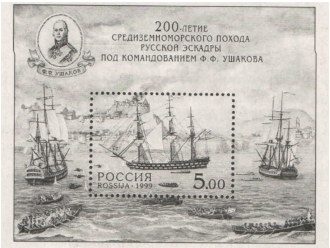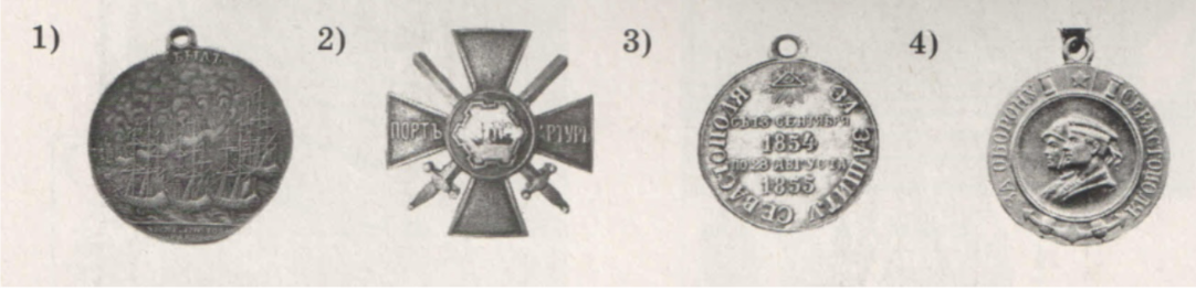 Укажите цифру, которой обозначена награда, посвящённая событию, в котором принимал участие адмирал, изображённый на марке. Укажите название страны, с которой воевала Россия в тот период.