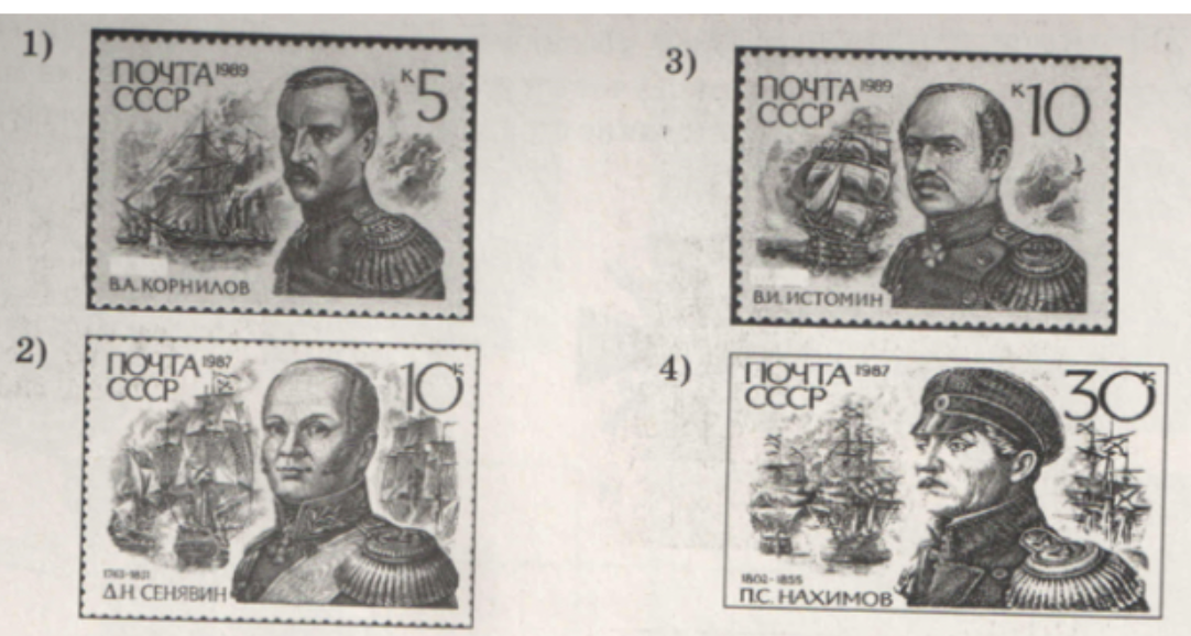 Кто из изображенных на марках русских адмиралов был современником события, которому посвящена данная марка? В ответе запишите цифру, которыми обозначена эта марка. Укажите императора, правившего в России, при котором произошло событие, изображенное на приведённой выше марке.