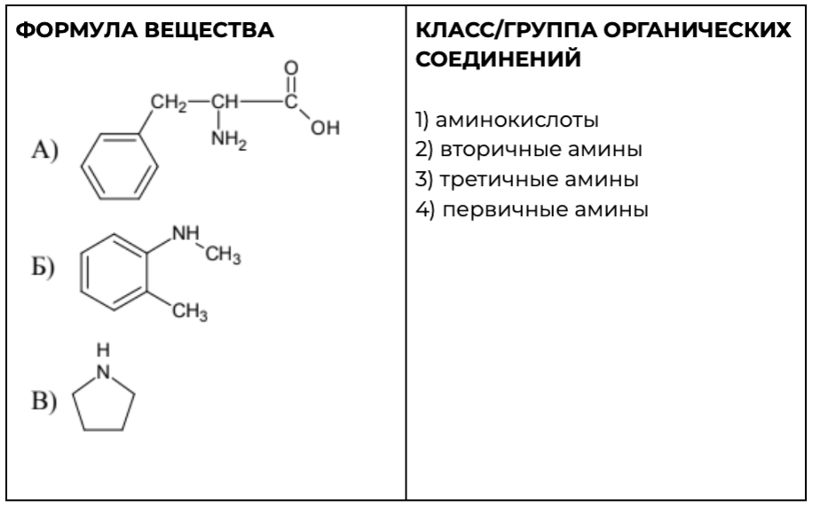 Установите соответствие между формулой вещества и классом/группой органических соединений, к которому(-ой) это вещество принадлежит: к каждой позиции, обозначенной буквой, подберите соответствующую позицию, обозначенную цифрой.