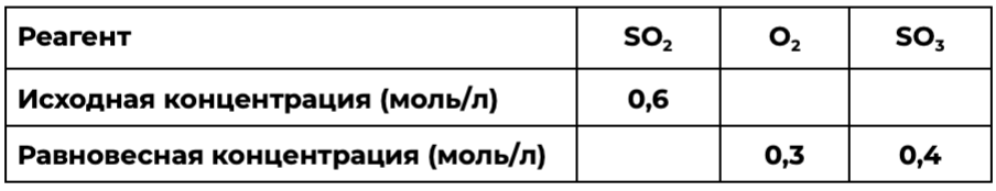 Используя данные, приведённые в таблице, определите равновесную концентрацию SO2 (X) и исходную концентрацию O2 (Y).