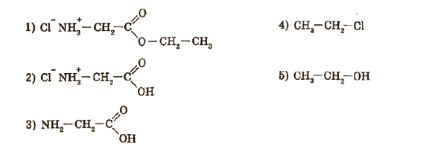 Из предложенного перечня выберите два вещества, которые образуются в результате гидролиза этилового эфира глицина в присутствии соляной кислоты.
