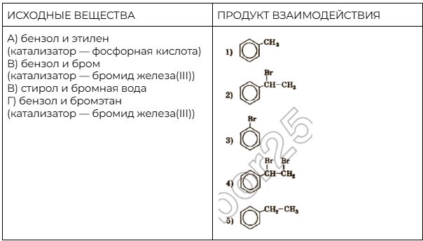 Установите соответствие между исходными веществами и органическим веществом, преимущественно образующимся при их взаимодействии: к каждой позиции, обозначенной буквой, подберите соответствующую позицию, обозначенную цифрой.