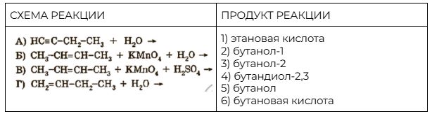Установите соответствие между схемой реакции и органическим веществом, преимущественно образующимся в результате этой реакции: к каждой позиции, обозначенной буквой, подберите соответствующую позицию, обозначенную цифрой.