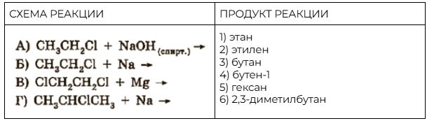 Установите соответствие между схемой реакции и органическим веществом, которое является продуктом этой реакции: к каждой позиции, обозначенной буквой, подберите соответствующую позицию, обозначенную цифрой.
