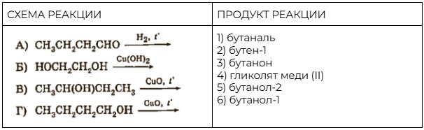 Установите соответствие между схемой реакции и органическим веществом, которое является продуктом реакции: к каждой позиции, обозначенной буквой, подберите соответствующую позицию, обозначенную цифрой.