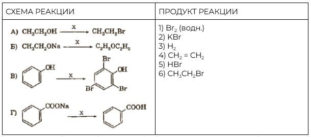 Установите соответствие между схемой реакции и органическим веществом, которое является продуктом реакции: к каждой позиции, обозначенной буквой, подберите соответствующую позицию, обозначенную цифрой.
