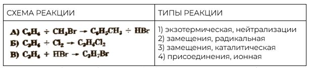 Установите соответствие между схемой реакции и типами реакции, протекающей между этими веществами: к каждой позиции, обозначенной буквой, подберите соответствующую позицию, обозначенную цифрой.