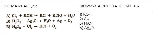Установите соответствие между схемой реакции и формулой вещества-восстановителя в ней: к каждой позиции, обозначенной буквой, подберите соответствующую позицию, обозначенную цифрой.