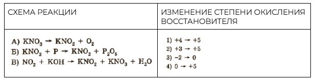 Установите соответствие между схемой реакции и изменением степени окисления восстановителя в ней: к каждой позиции, обозначенной буквой, подберите соответствующую позицию, обозначенную цифрой.