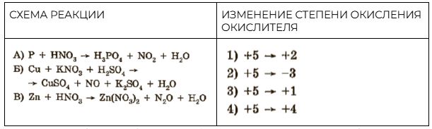 Установите соответствие между схемой реакции и изменением степени окисления окислителя в данной реакции: к каждой позиции, обозначенной буквой, подберите соответствующую позицию, обозначенную цифрой.