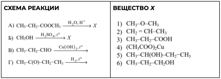 Установите соответствие между схемой реакции и органическим веществом Х, преимущественно образующимся в этой реакции: к каждой позиции, обозначенной буквой, подберите соответствующую позицию, обозначенную цифрой.
