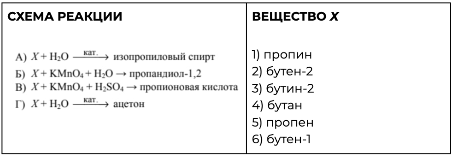 Установите соответствие между схемой реакции и веществом Х, принимающим в ней участие: к каждой позиции, обозначенной буквой, подберите соответствующую позицию, обозначенную цифрой.