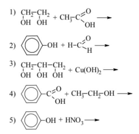 Из предложенного перечня выберите две схемы реакций, в результате которых образуются сложные эфиры.