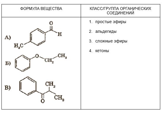 Установите соответствие между формулой вещества и классом/группой органических соединений, к которому(-ой) это вещество принадлежит: к каждой позиции, обозначенной буквой, подберите соответствующую позицию, обозначенную цифрой.