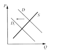 На графике изображено изменение ситуации на рынке пуховых одеял. Кривая спроса переместилась из положения D в положение D1 при неизменном предложении S. (На графике P — цена товара; Q — количество товара.)