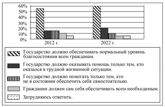В ходе социологических опросов совершеннолетних граждан страны Z им предлагали высказать своё мнение о социальной поддержке граждан со стороны государства. Полученные результаты (в % от числа опрошенных) представлены в виде диаграммы.